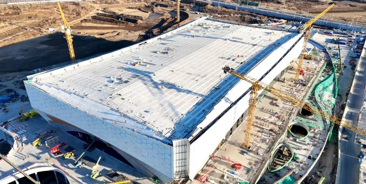 秋碧如洗的渾河之畔,“云上冰玉” 正以出水芙蓉之姿亭亭玉立。這座總建筑面積達 26.38 萬平方米的冰上巨構,將 “城市與自然共生” 的理念凝于鋼筋鐵骨,其中 13.57 萬平方米的國家速滑館更以流線型弧面勾勒出渾河的靈動 —— 空中俯瞰,三新實業打造的屋面恰似鎏金鳳冠,在北國陽光下流轉著技術與藝術交融的光芒。
